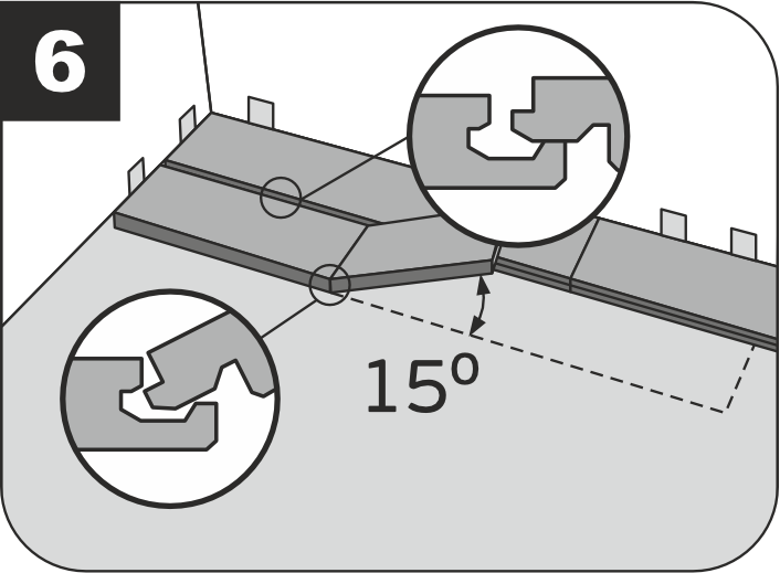 7.3.1 Плашки соединяются по торцевым замкам под углом 15°.
